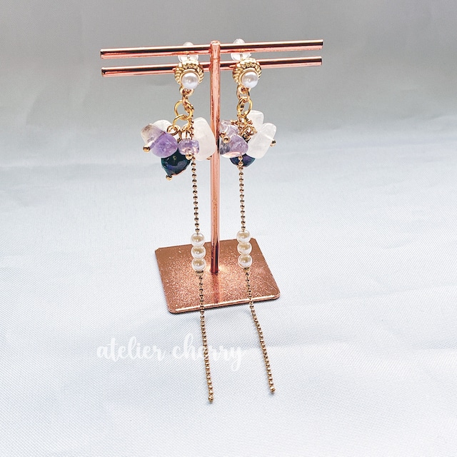 天然石×フラワーモチーフのロングタッセルピアス(金具変更可)