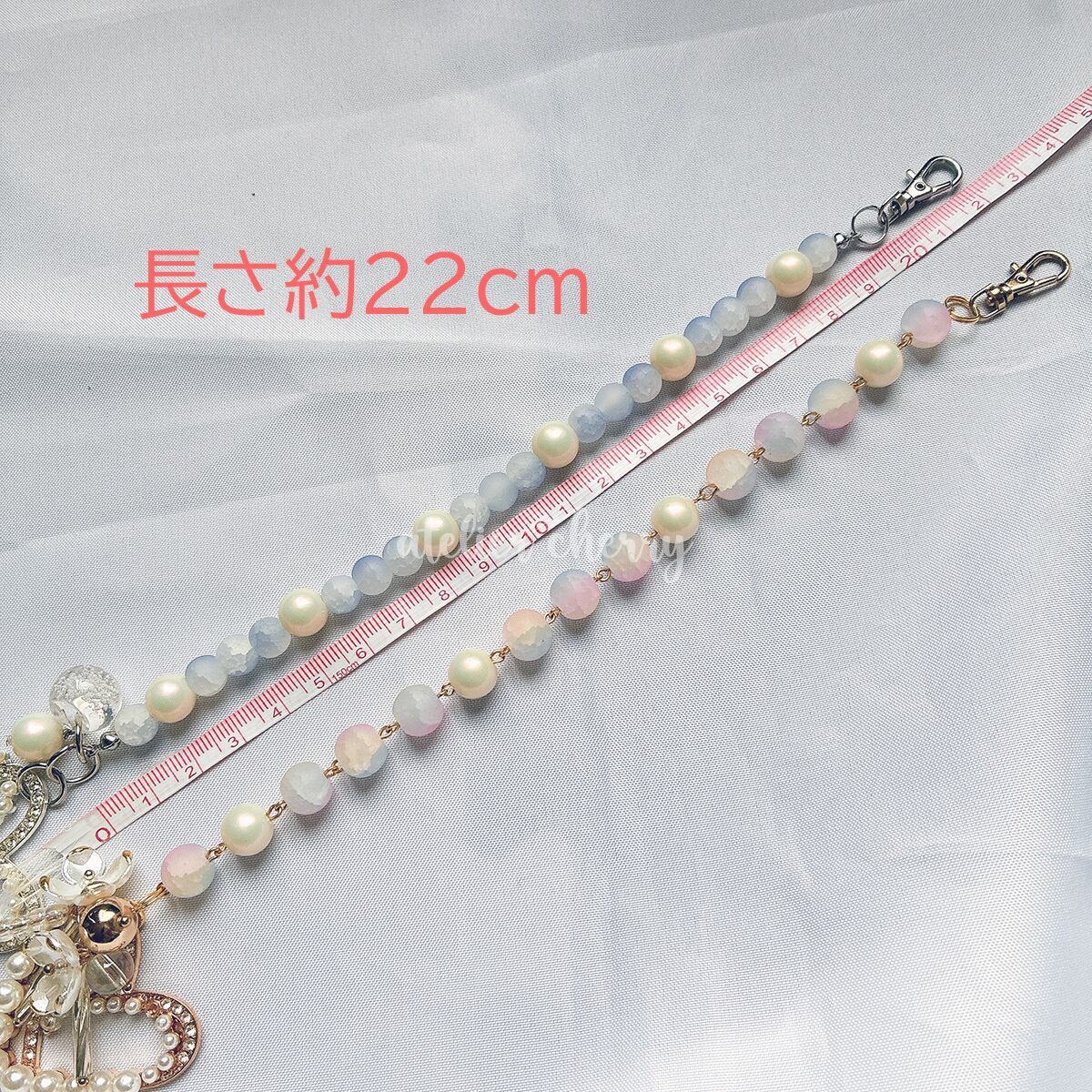 ふんわりカラーのガラスビーズと、きらっと輝くハートチャームを組み合わせたバッグチャームです。