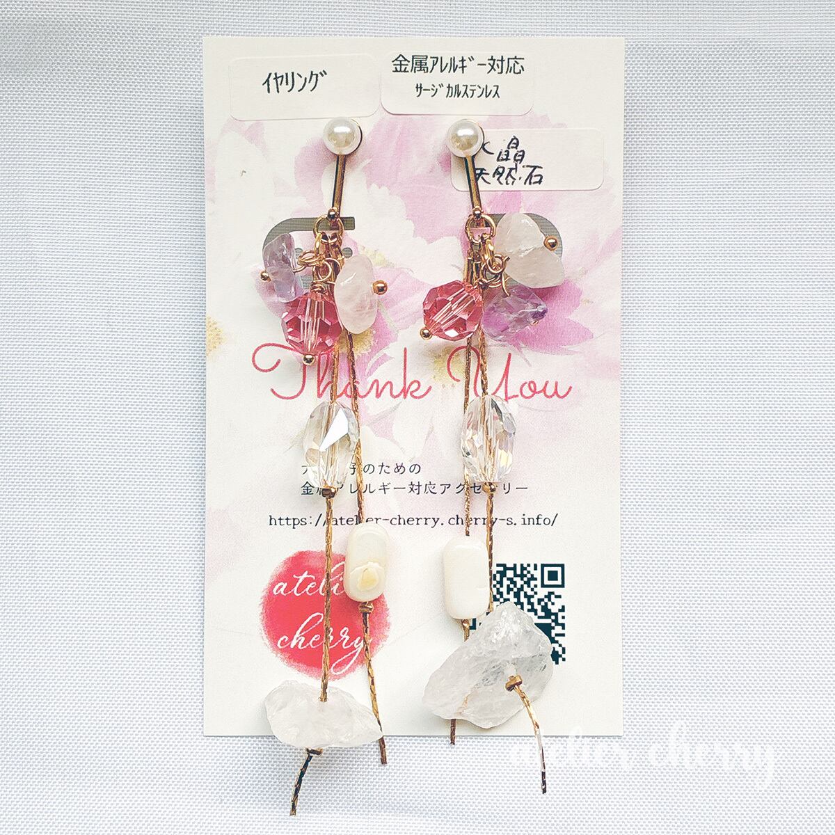 輝きの重なり。スワロフスキーと水晶とさざれ石のタッセルイヤリング