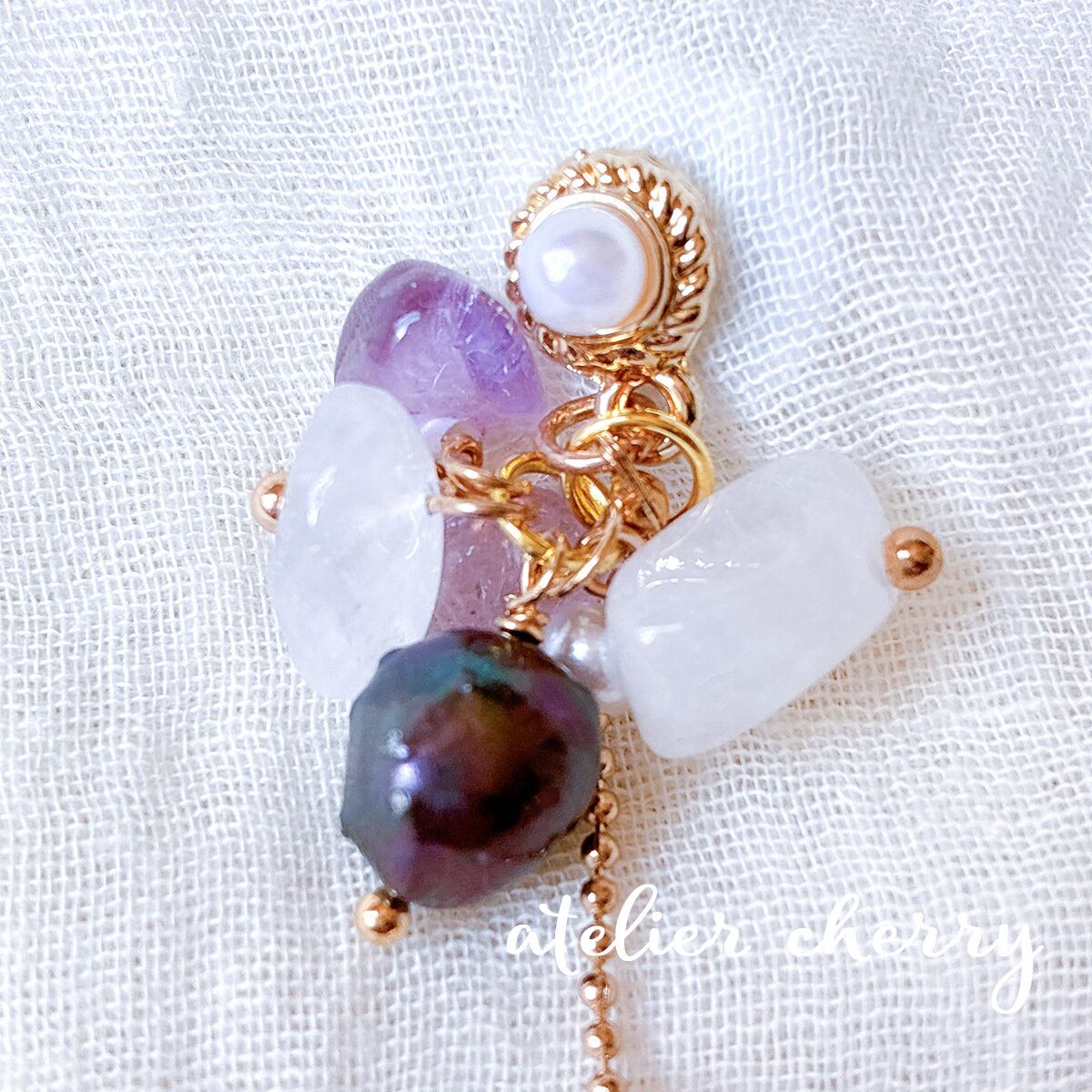 淡い色合いの天然石に、深みのあるシェルをひと粒。