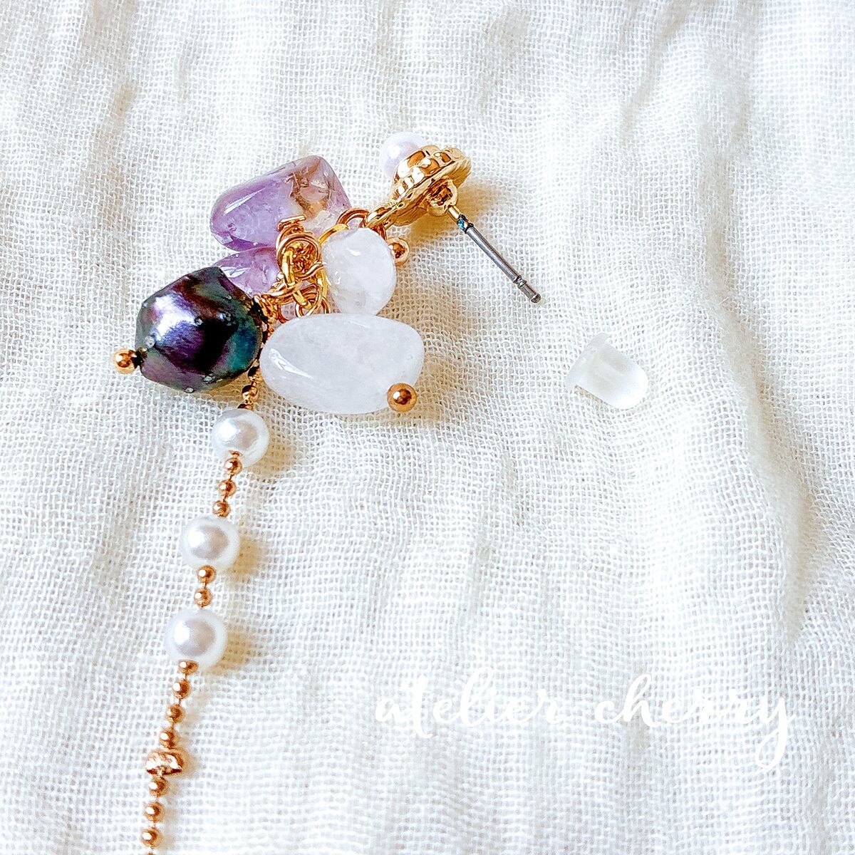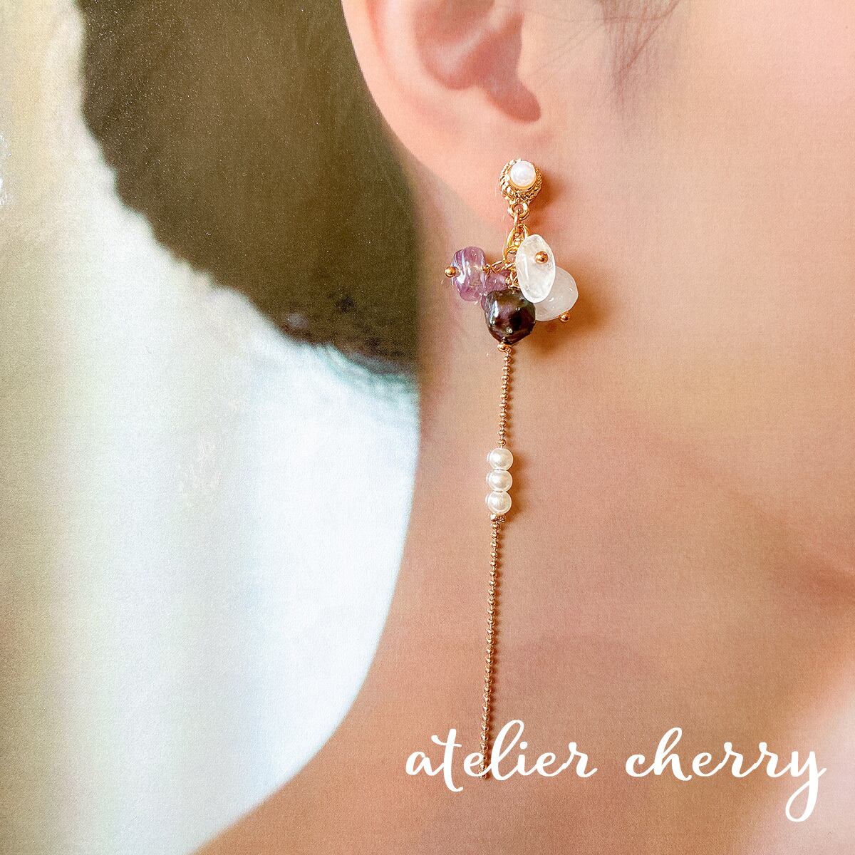 余韻を残す揺れ感の天然石ピアス|ロングタッセル(チタンポスト・イヤリング変更可)