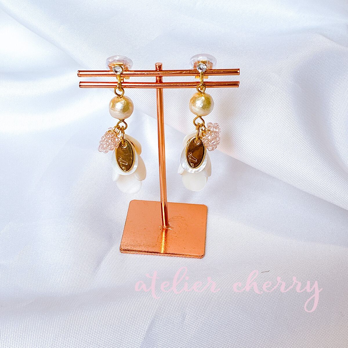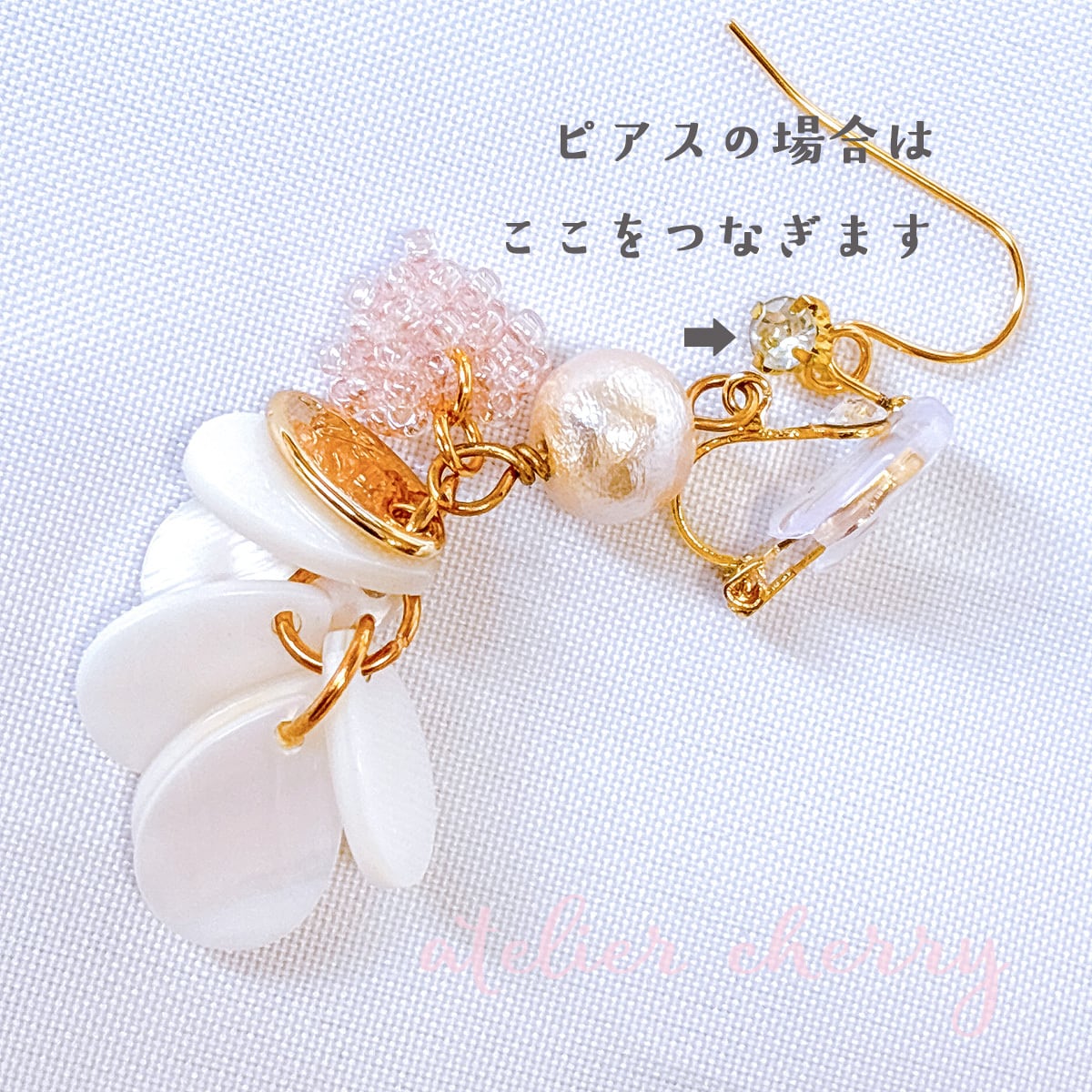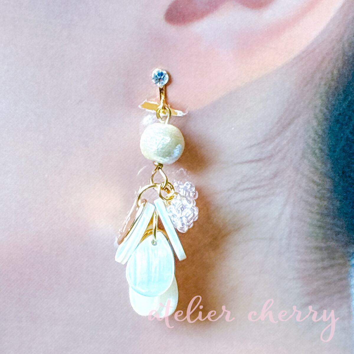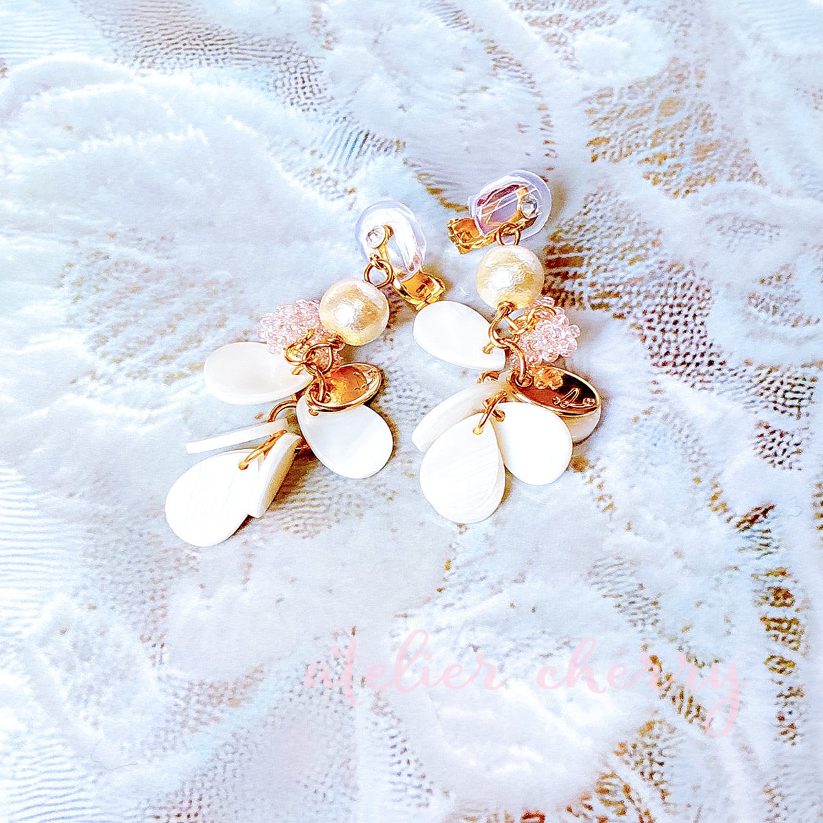 横顔をドレスアップする、シェルクラスターイヤリング【サージカルステンレス】(金具変更可)